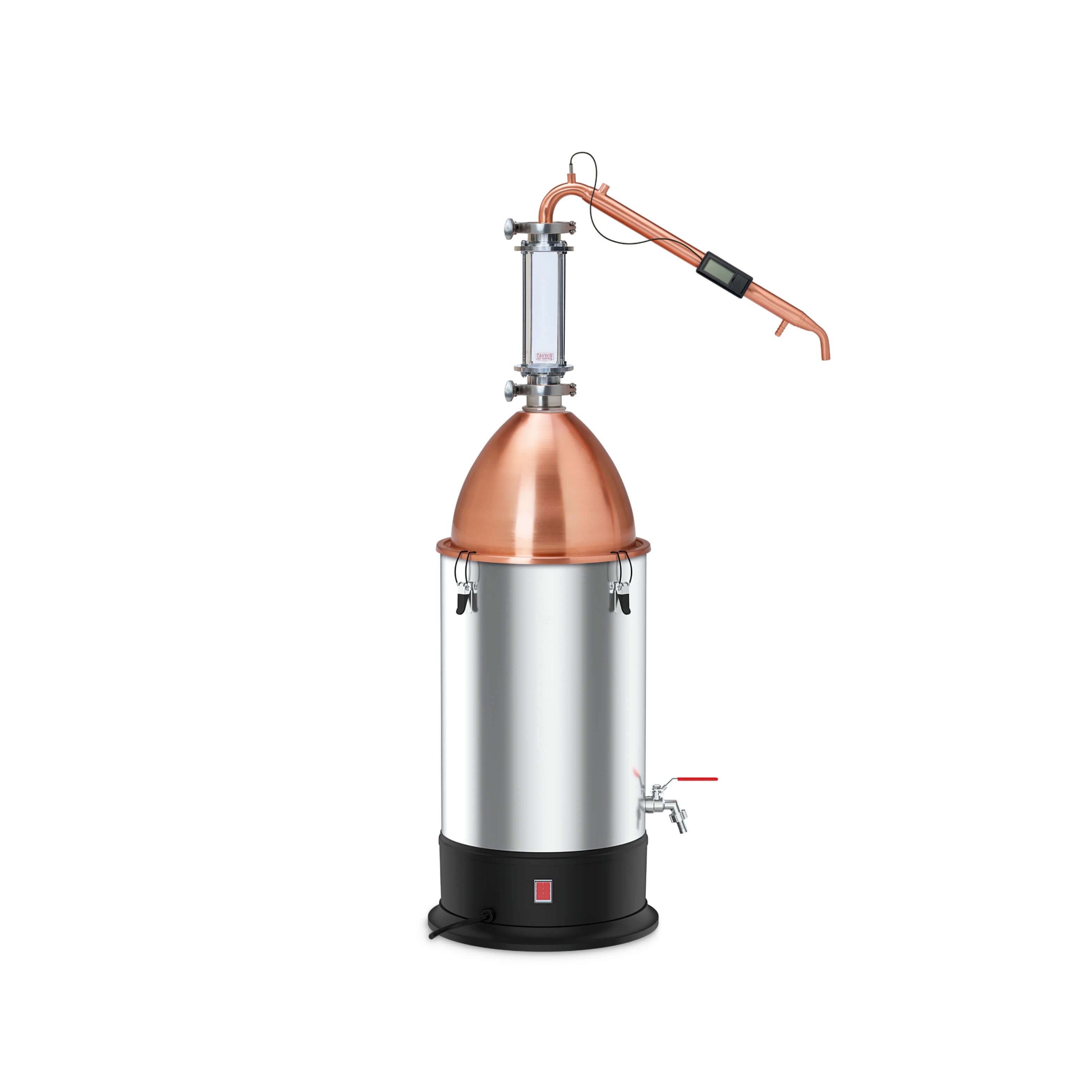 Perfect for making high quality vodka or neutral spirit for flavouring. Also suitable for distilled water.The T500 Pro features a thermowell at the top of the column for accurate vapour temperature monitoring, a beeping alarm thermometer with adjustable high and low temperature alerts, and robust 2” tri-clamp fittings for a secure, modular setup. The detachable product condenser and removable cold finger cooling coil offer added versatility, while improved water efficiency saves up to 30% compared to the original T500, depending on usage.