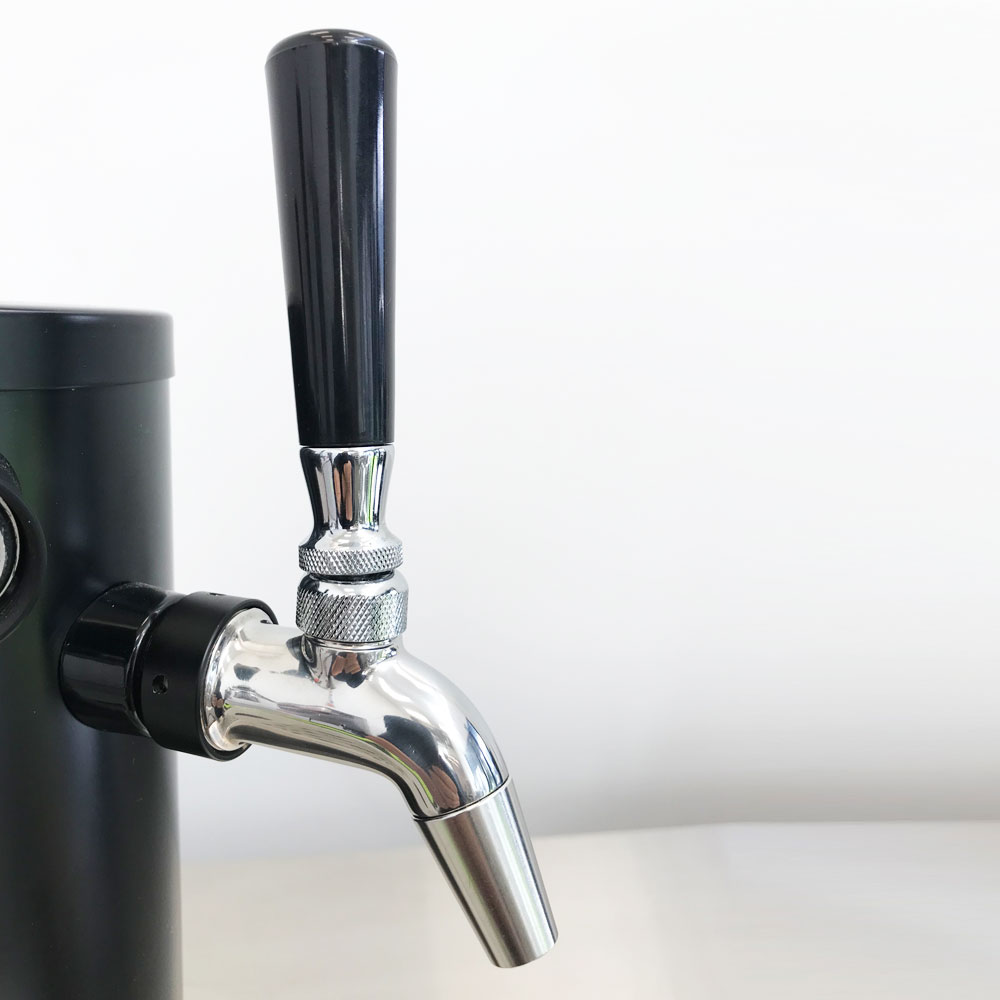 This Beer faucet uses a threaded spout, compatible with Nukatap fittings, that can quickly and easily be removed and replaced with a range of other spouts including: