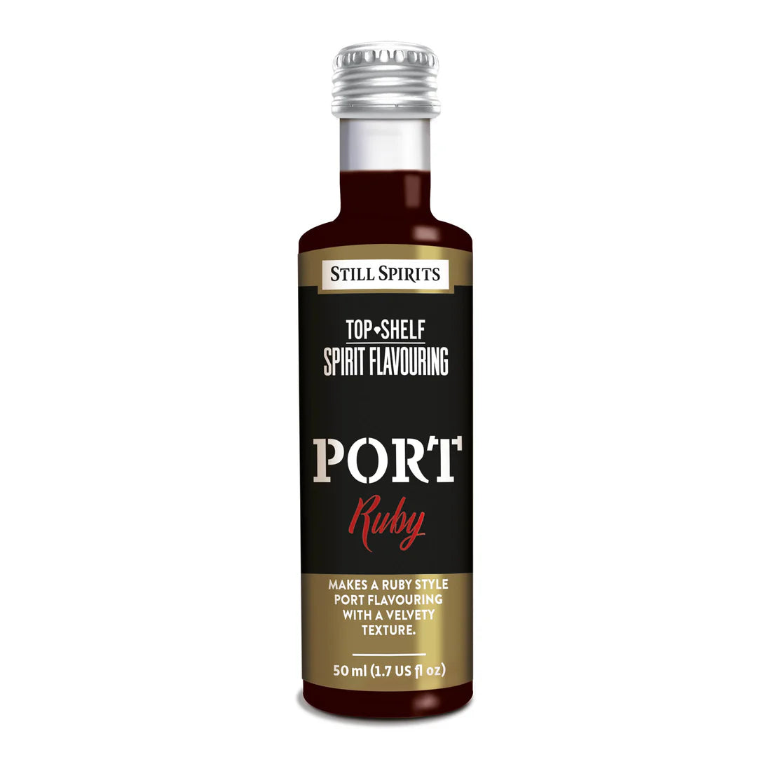 Shake well before use. Dissolve a packet of Still Spirits Liqueur Base B in 1 bottle (750 ml (25 US fl oz)) of red wine (Merlot). Add this essence and 770 ml (26 US fl oz) of 40% ABV neutral spirit or vodka. Top up to 2.25 L (76 US fl oz) with water. Add sugar to taste if a sweeter port is desired. Makes three 750 ml (25 US fl oz) bottles.
