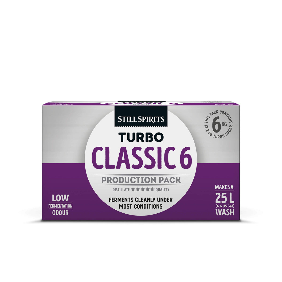 Classic 6 is the low fermentation odour. Specifically formulated to ferment 6 kg (13.2 lb) of sugar across a wide range of temperatures, while still producing a clean tasting spirit. We recommend you use Turbo Carbon as it will significantly improve the performance of Classic 6 Turbo.
